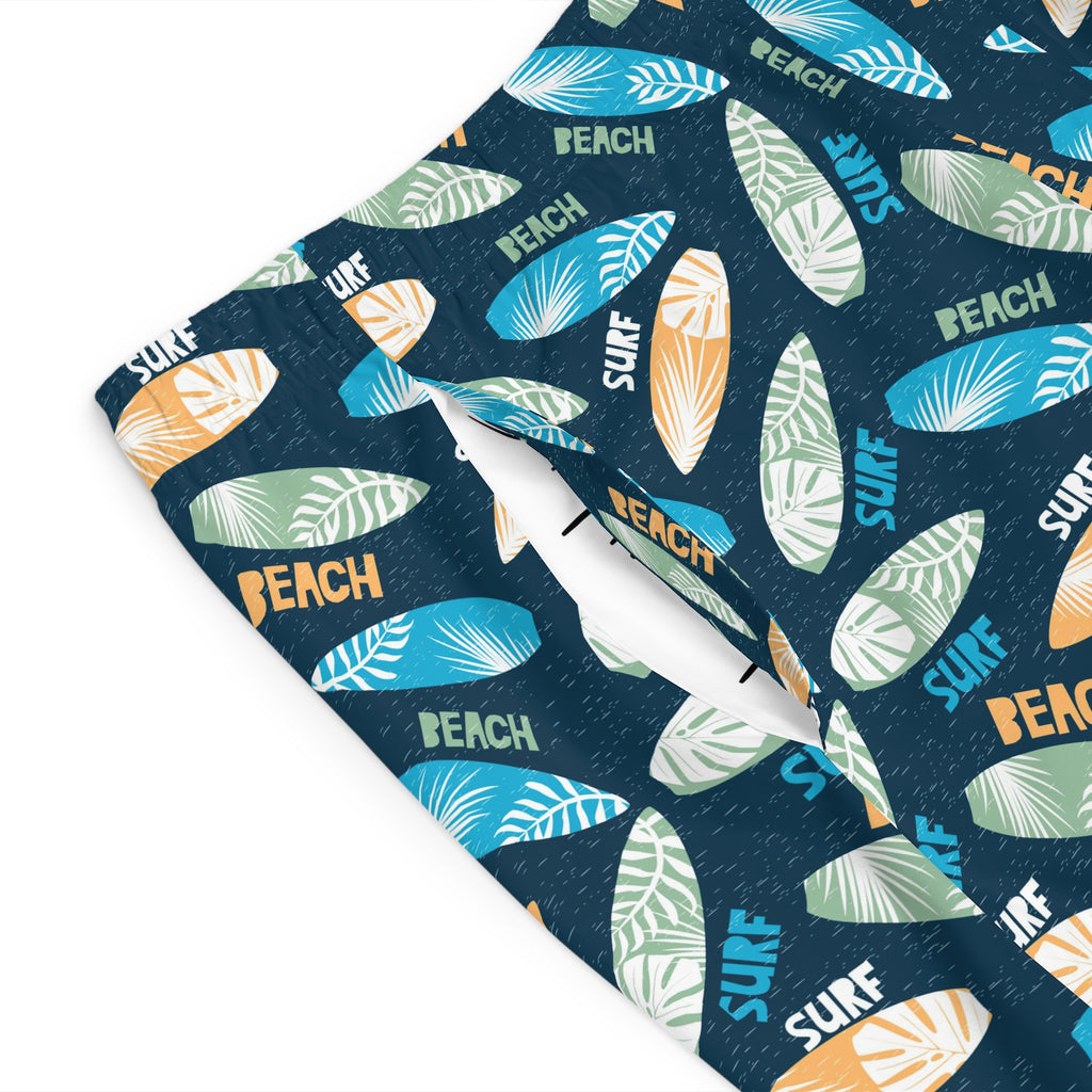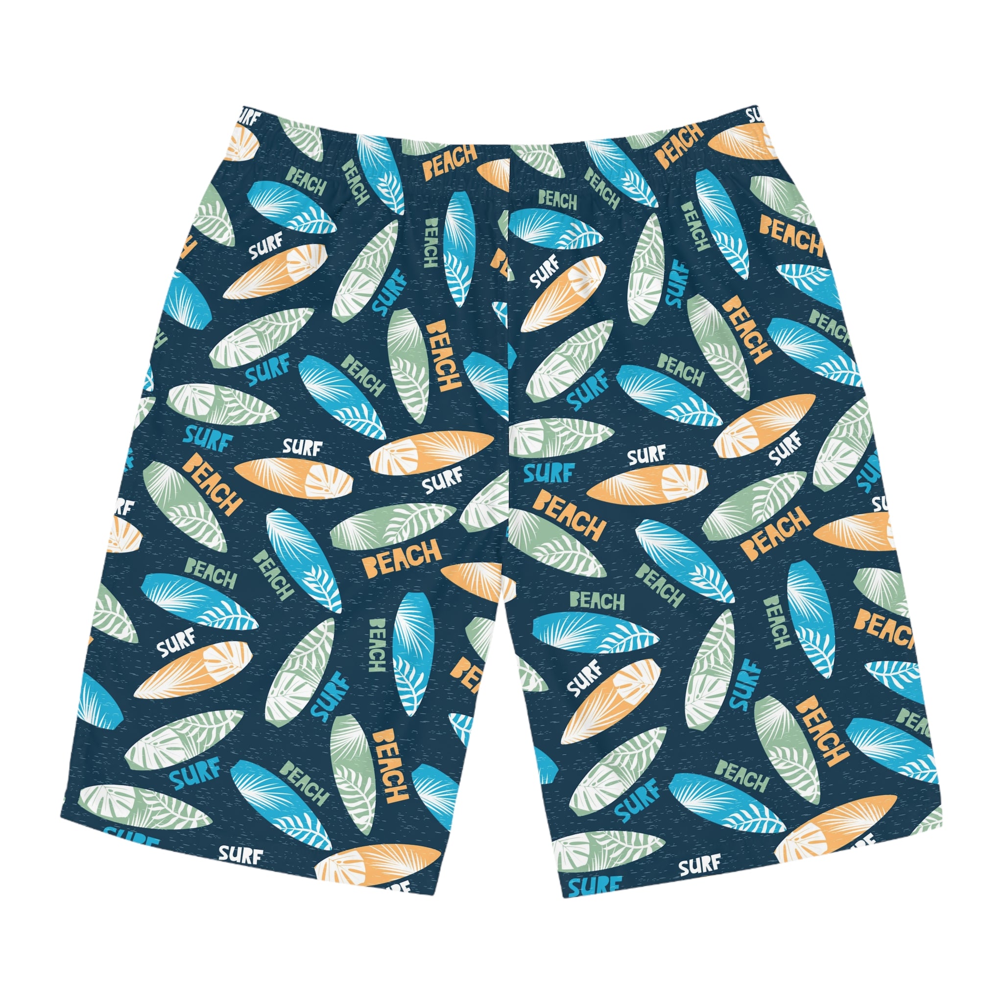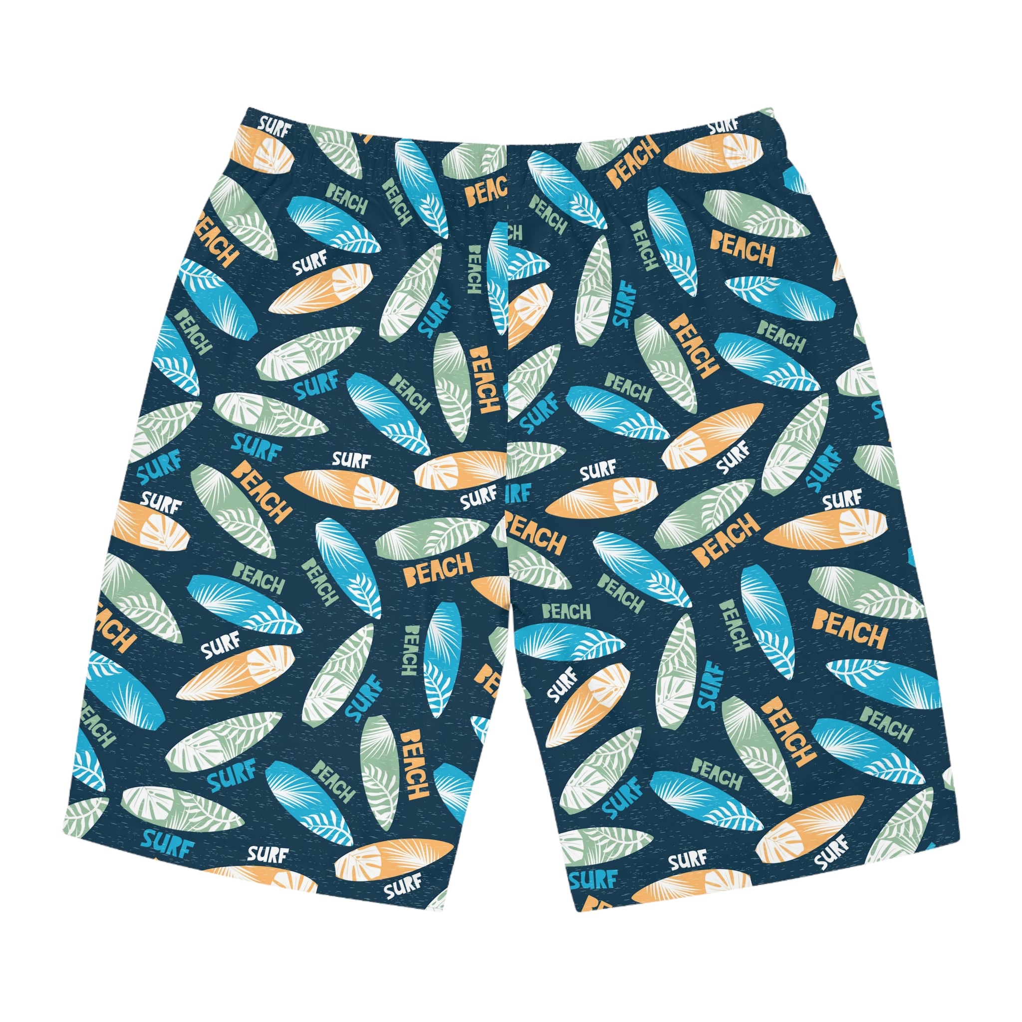 Add a personalized touch to your wardrobe with these custom board shorts for men. Made with light, breathable polyester fabric, these shorts feature 2 side pockets for daily convenience, an elastic waistband, and a black drawstring rope.
