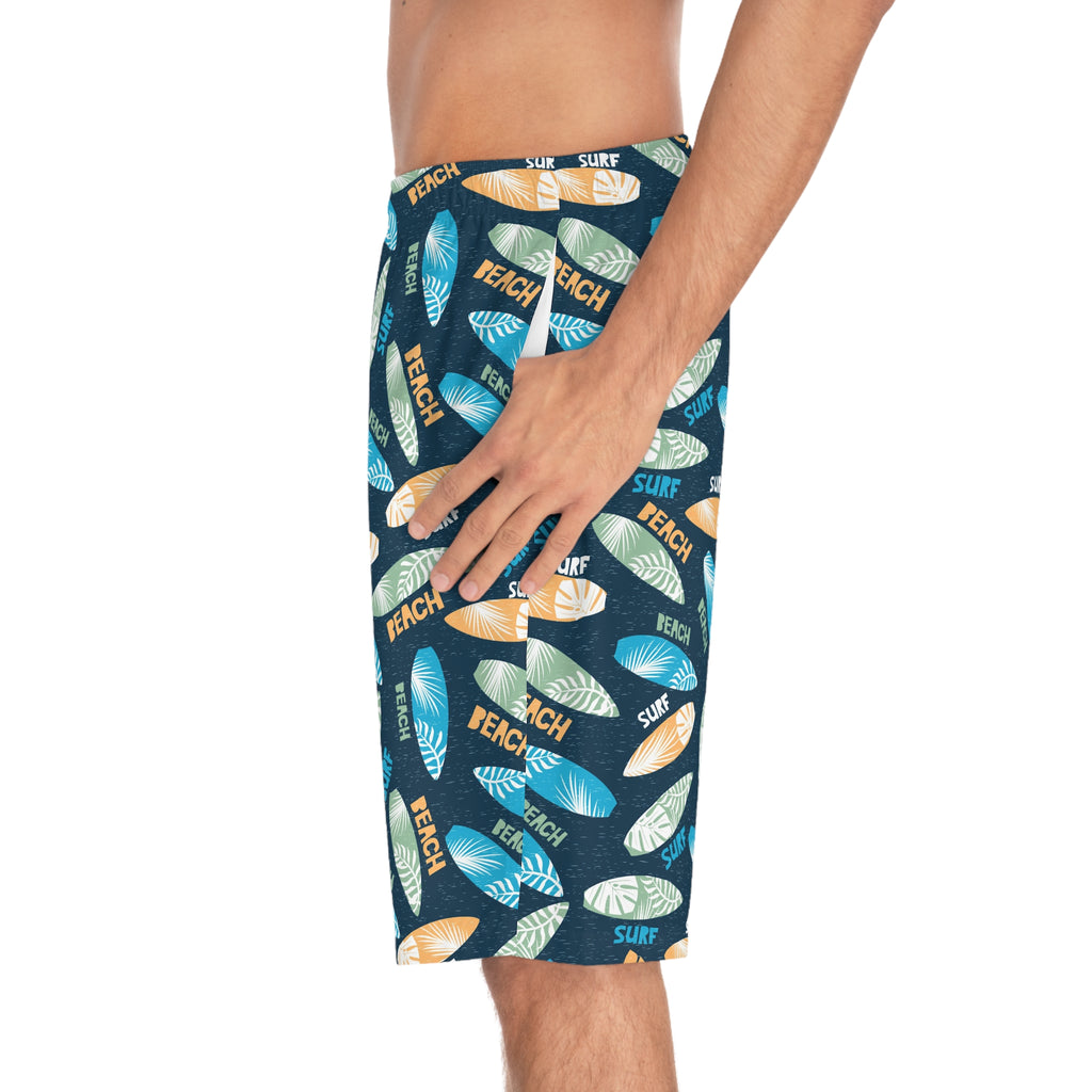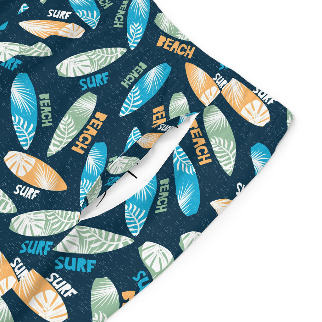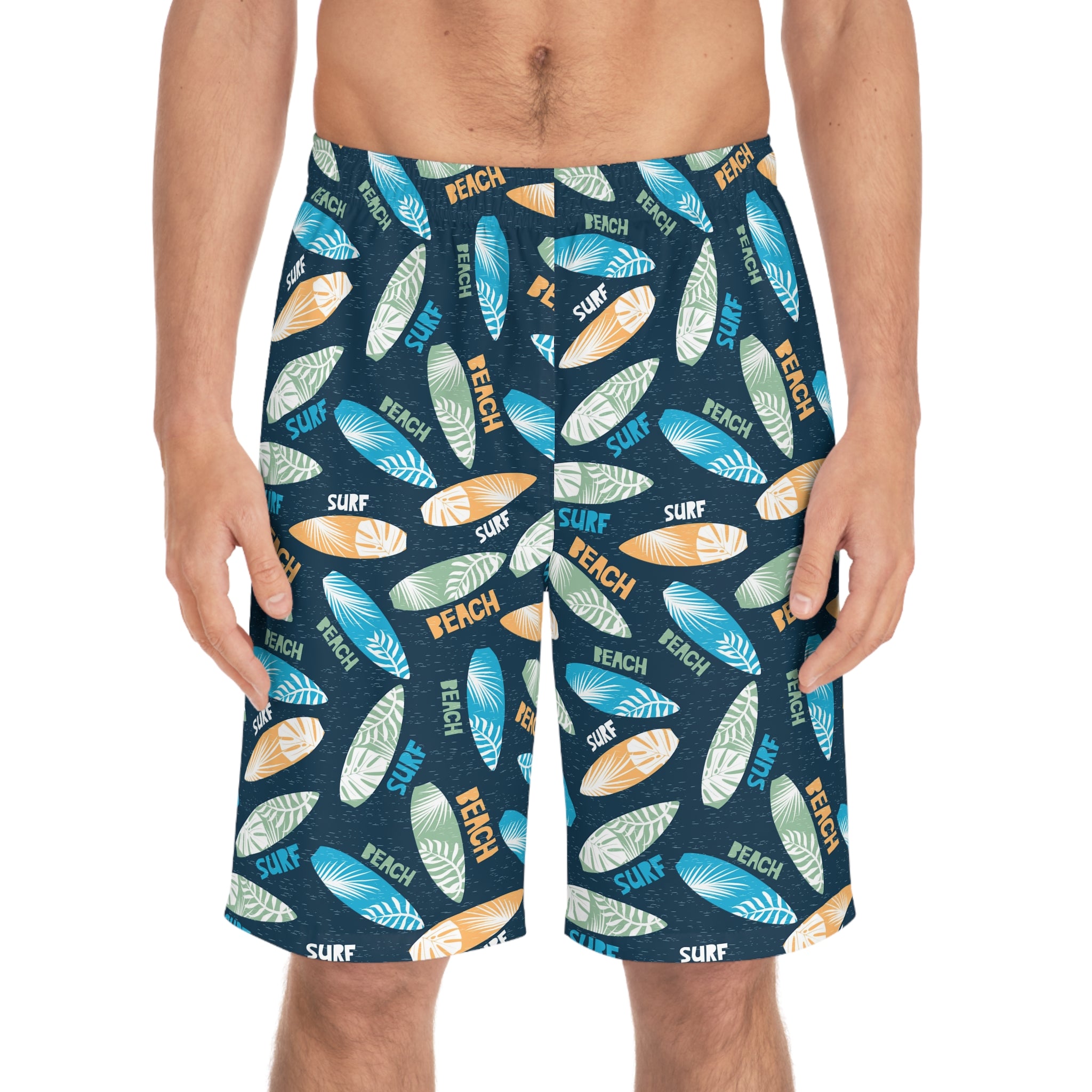 Add a personalized touch to your wardrobe with these custom board shorts for men. Made with light, breathable polyester fabric, these shorts feature 2 side pockets for daily convenience, an elastic waistband, and a black drawstring rope.